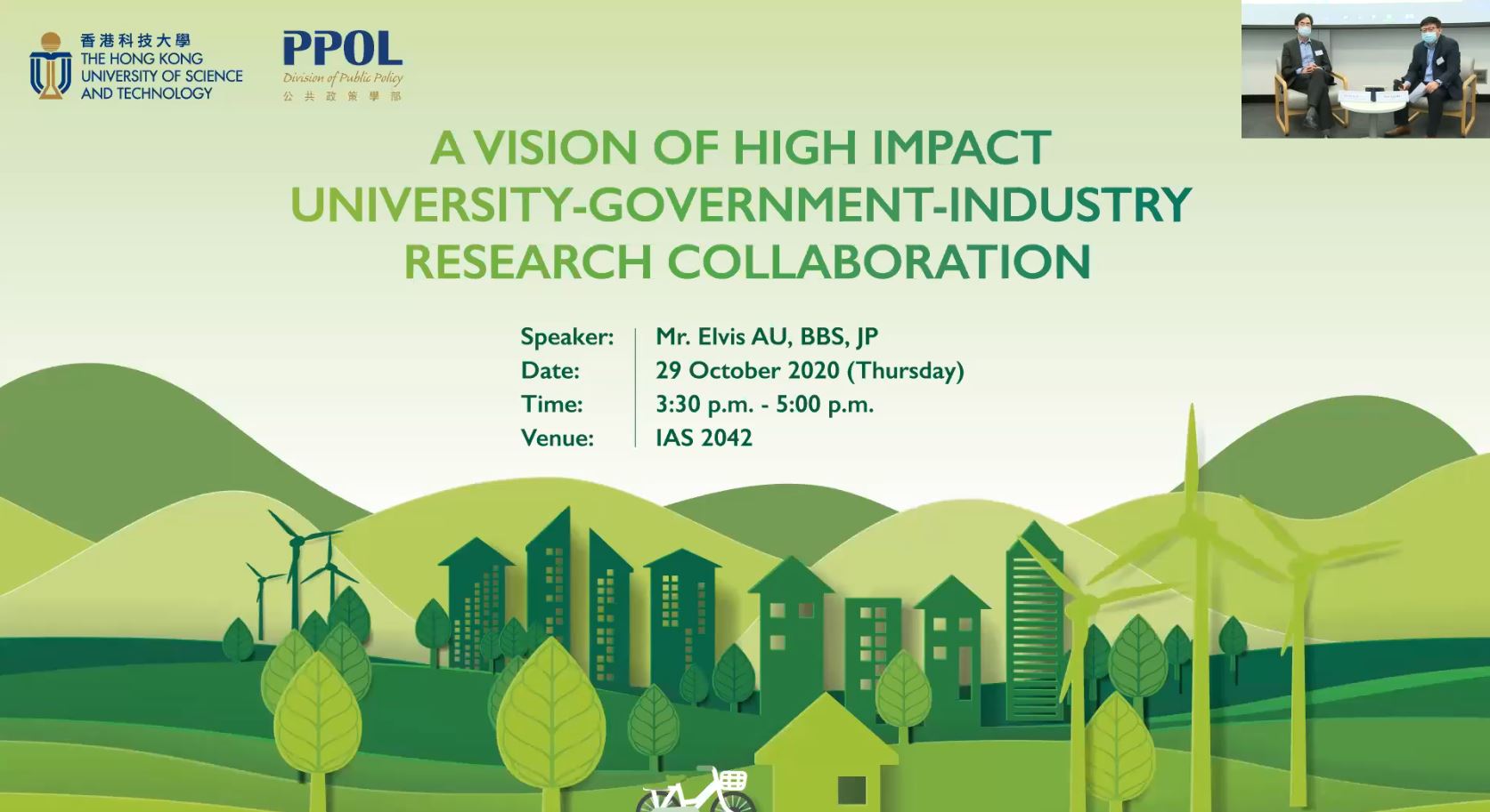 The seminar invited Mr. AU Wai-kwong Elvis, BBS, JP, the Deputy Director of the Environmental Protection Department of HKSAR Government as the speaker. Mr. Au has over 35 years of experience in various environmental and energy fields. He is the former President of the International Association for Impact Assessment and the former Chairman of the Environmental Division of Hong Kong Institution of Engineers (HKIE). He is a Fellow of HKIE, a Fellow of Hong Kong Institute of Planners and a Fellow of Hong Kong Institution of Environmental Impact Assessment. The seminar presented the latest vision and agenda of environmental research and development promoted by the Government, the latest operation of the Environmental Academy set up by the Environmental Protection Department, and the latest Government’s drive for smart environment.